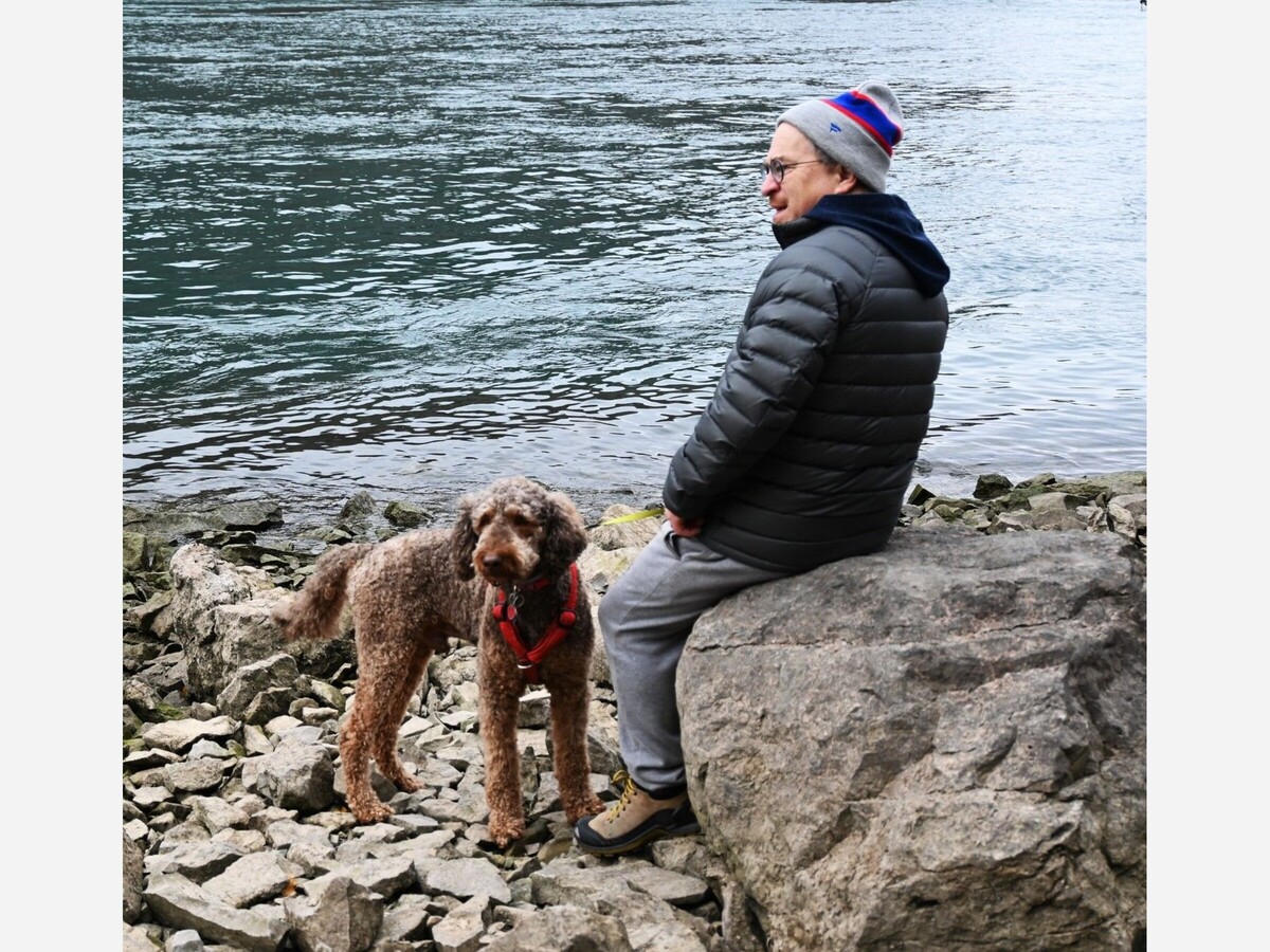 Gord and Beth had a grand time. As we got back from Three Sisters near grassy area between the woods and the parking lot, Gord slipped his leash.