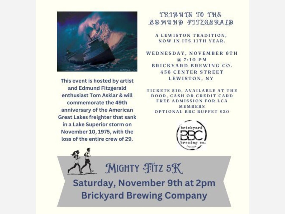 The annual Lewiston Council on the Arts observance of the Edmund Fitzgerald will be held at 7:10 p.m. Wednesday at Brickyard Brewing.