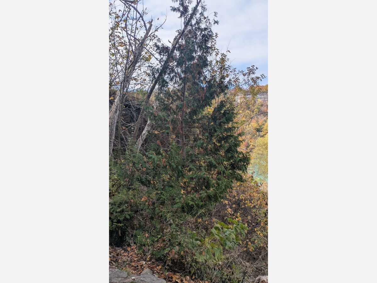 Last year about this time, I found oyster mushrooms there not far from the sassafras trees. Not Saturday. Still we headed down the stairs and paused to admire the ancient white cedars. We might not know of them without Bruce Kershner. May he rest in peace.