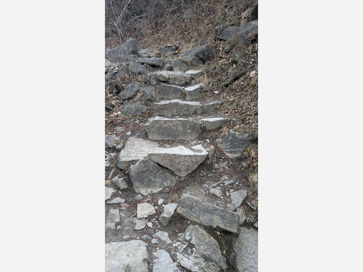 A remarkable thing on the path is the trail itself because in several places, rock stairs have been created but they look to be more naturally occurring than manmade.