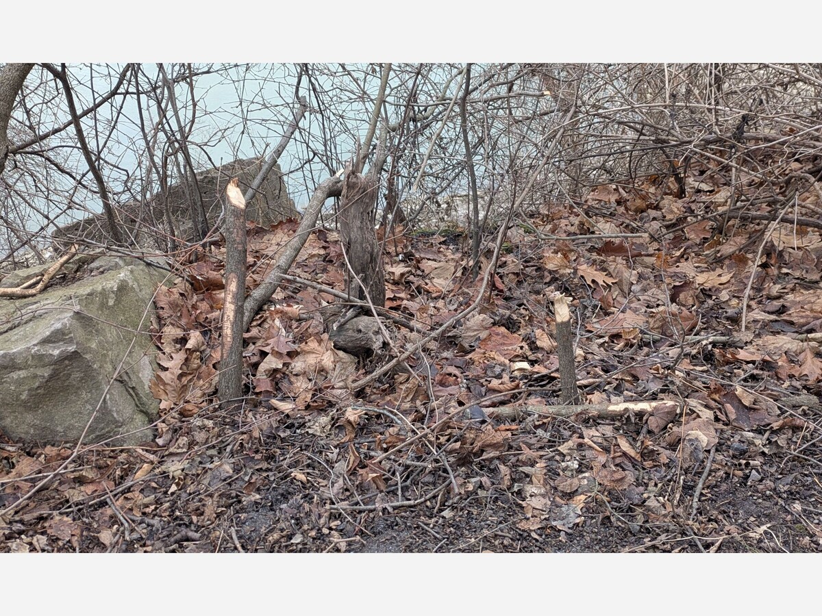 Between early January and last week, workers from State Parks had visited and cleared some blowdown along the trail we had to climb over 3 weeks ago. There were also fresh cut saplings along the trail. At first, I was torn about what cut them, suspecting a machete-wielding human but then I thought about it and decided the trees were river birch, not the invasive buckthorn. There was bark damage down low. My conclusion? Beaver.
