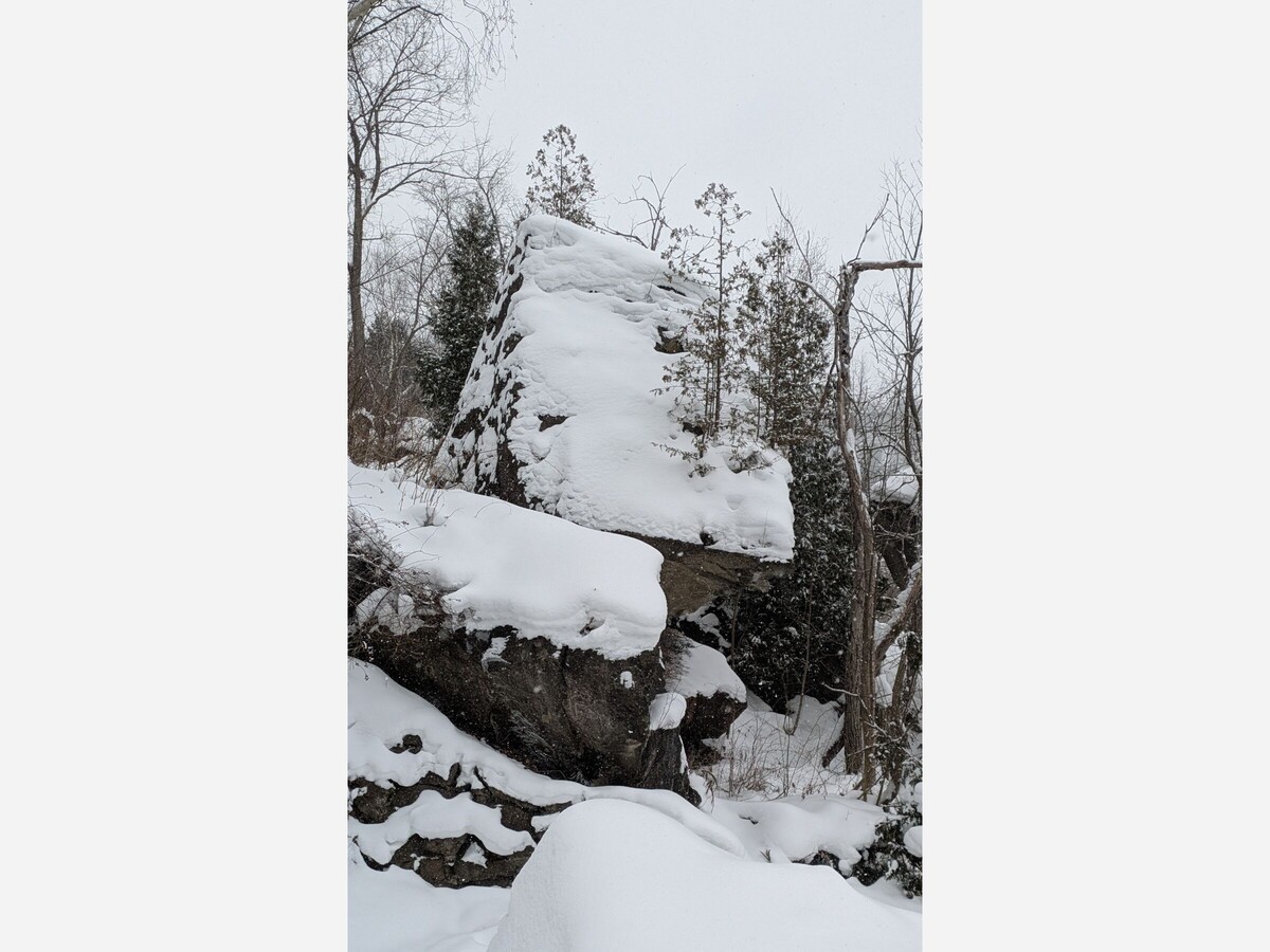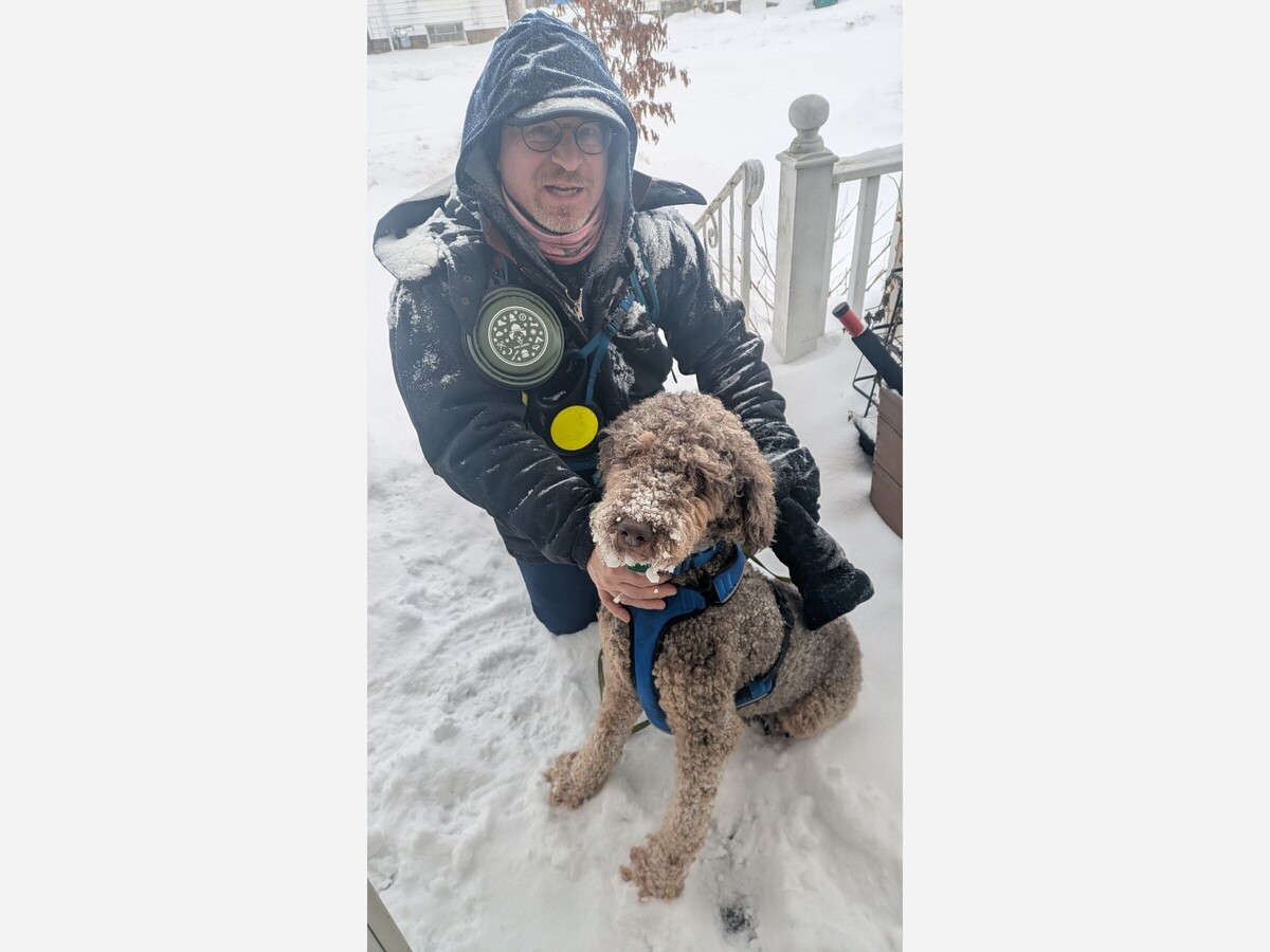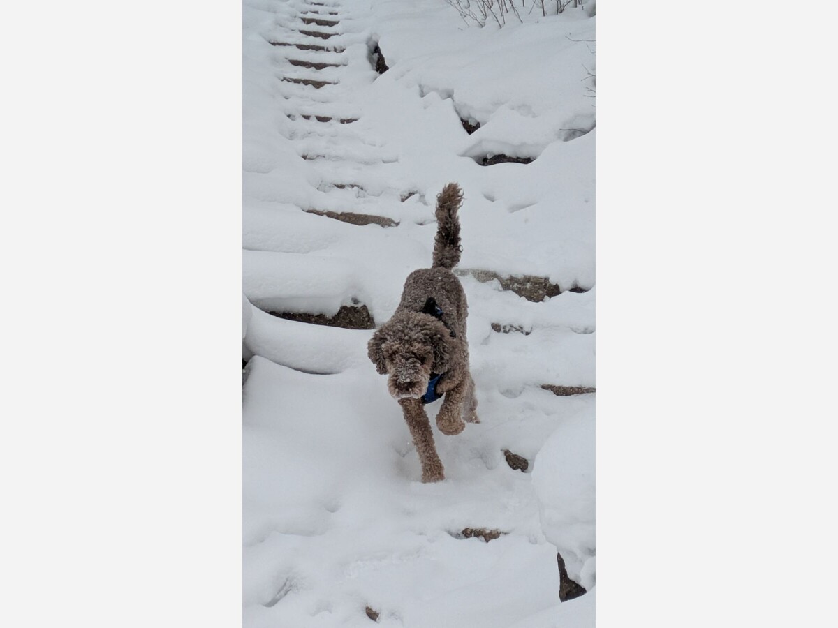 The 5-mile hike we like best took about about two hours. The snow never stopped. At one point, he stopped to gnaw ice off his paws. He even let me help clear some, which surprised me because a cold paw is a wounded paw and he was smart enough to know I would help.