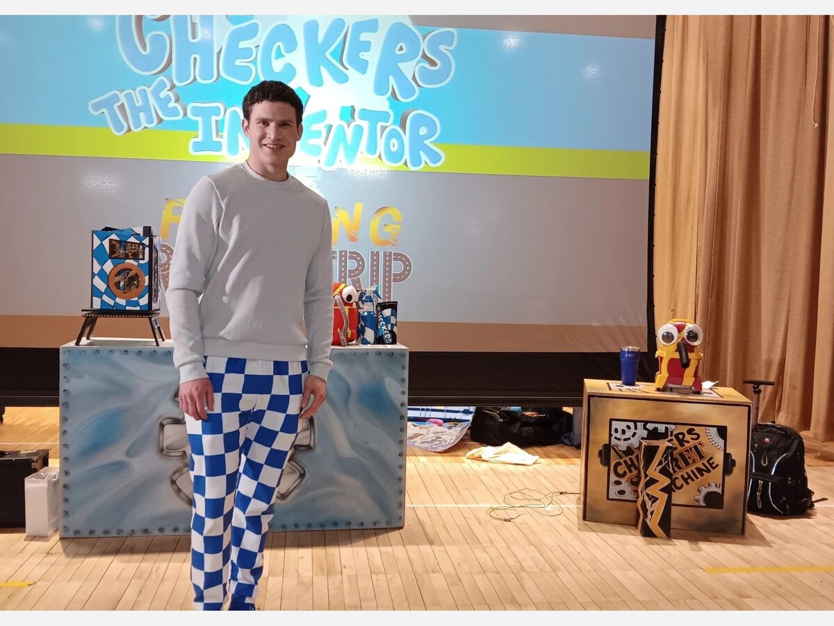 Hamilton, a Lancaster resident, explained his father attended Niagara University and recommended he introduce his program to Niagara Falls Public Schools. His character, Checkers the Inventor, performs tricks on stage with a variety of odd gadgets, but the aim of his performance is to attract kids to books, and to their local libraries.