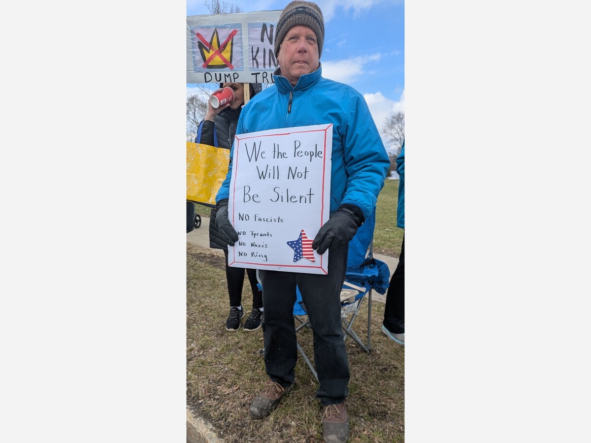 It was a cold Saturday still trapped in the stalled season of unlocking but that didn’t stop 200 or so Patriots from gathering at Hyde Park Boulevard and Pine Avenue for a “No Kings” protest.