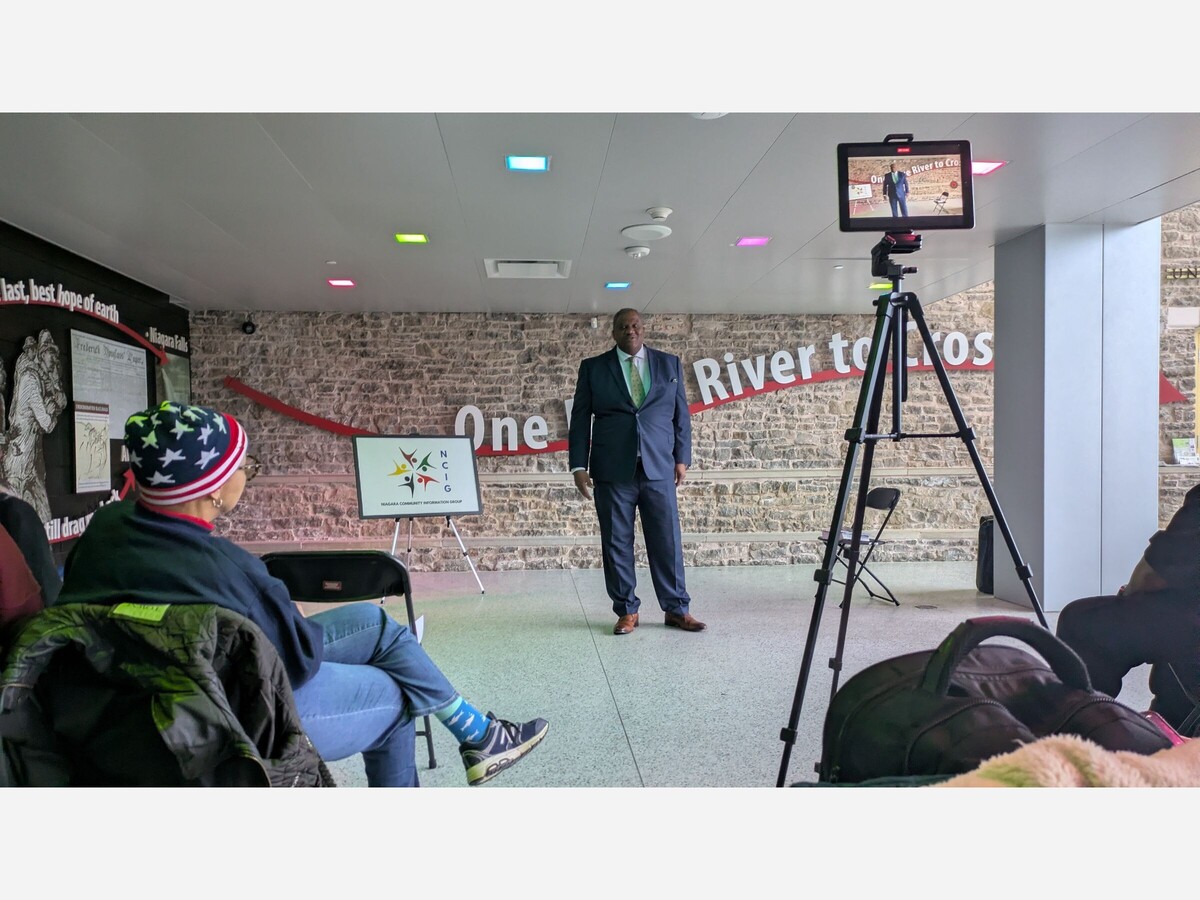The Niagara Community Information Group gathered Monday at the Underground Railroad Heritage Center and heard from Terrence L. Heard.