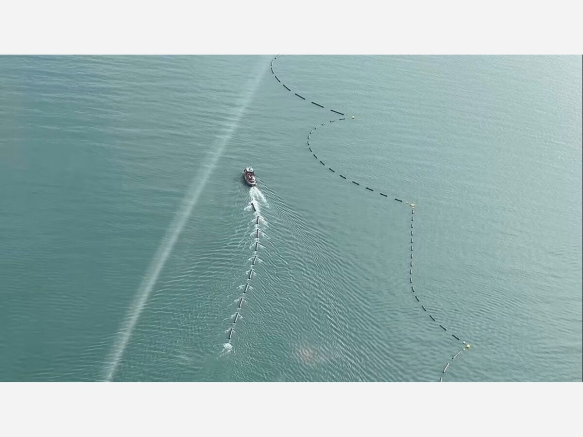 The ice boom is installed to reduce large chunks of ice from coming down the river which can cause jams impacting power production and shoreline damage and flooding.