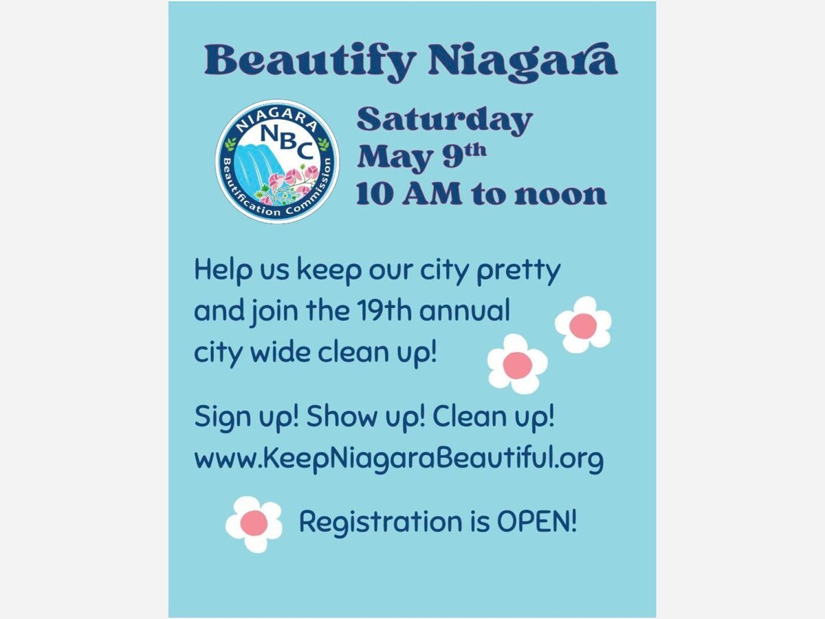 The Niagara Beautification Commission annual community cleanup is Saturday, May 9.